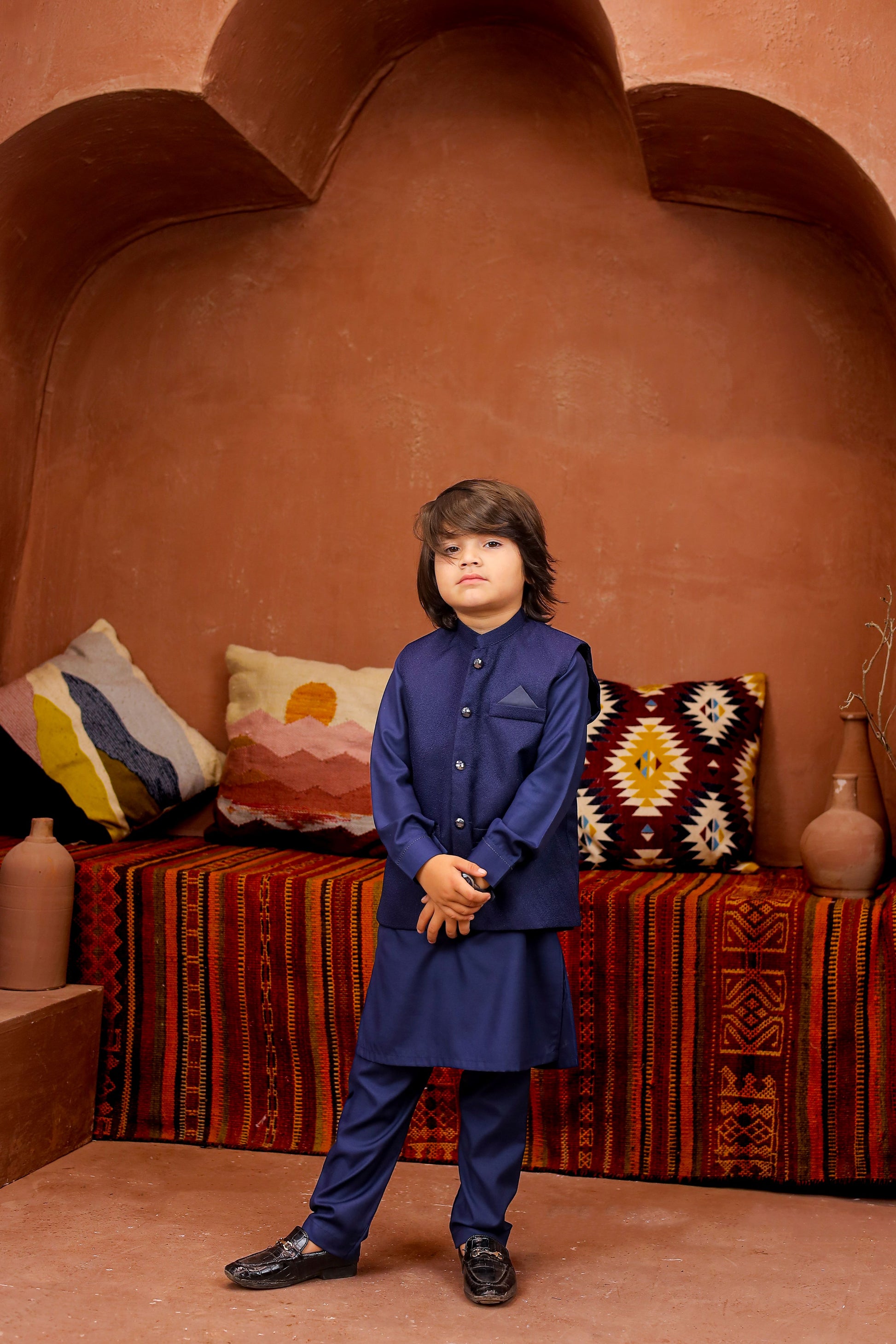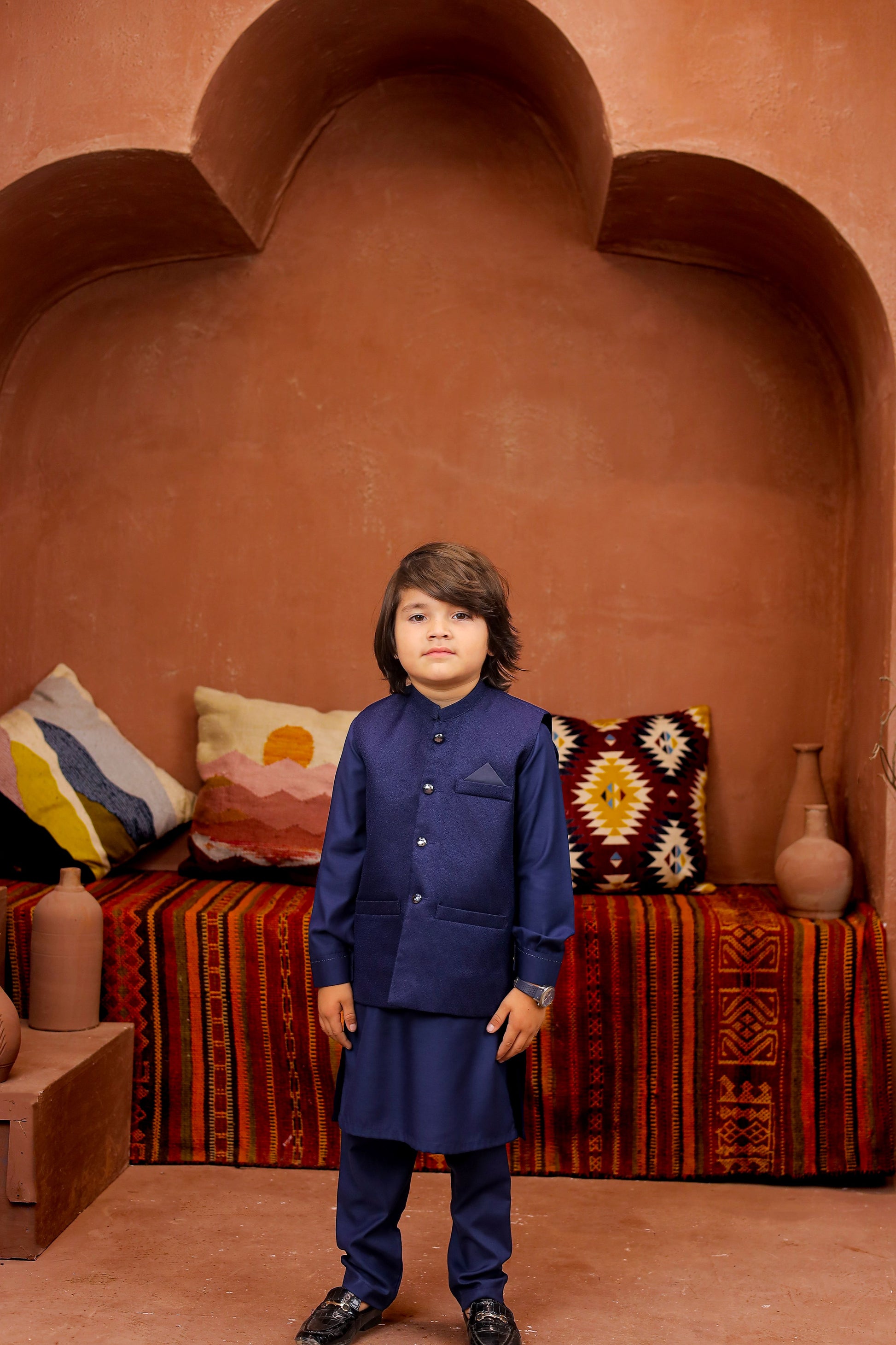 Introducing our Black 3-piece Formal Shalwar Kameez and Waistcoat set, tailored for boys with impeccable style and timeless Elegance, perfect for any special occasion.