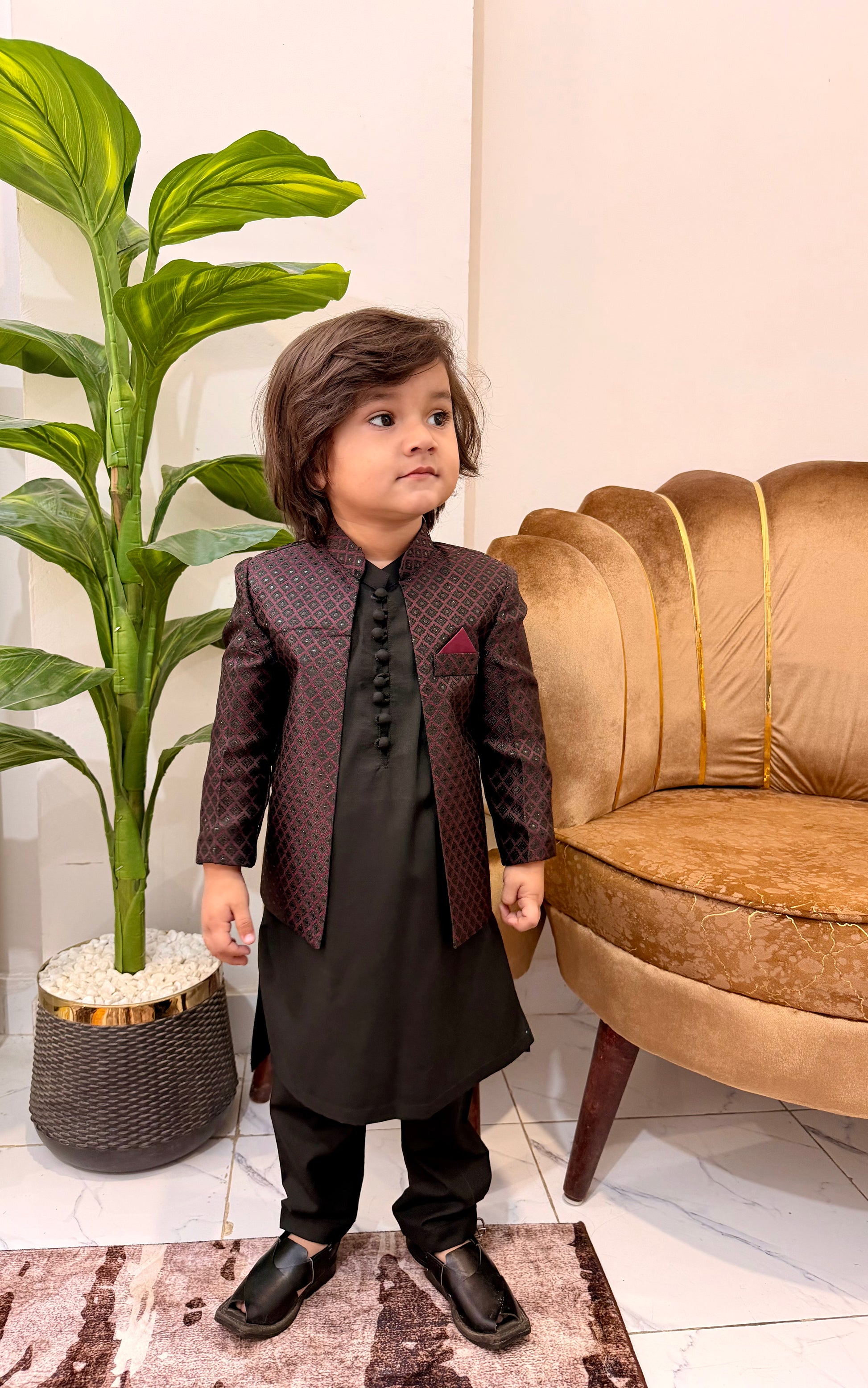 Maroon Prince Coat With Black Suit